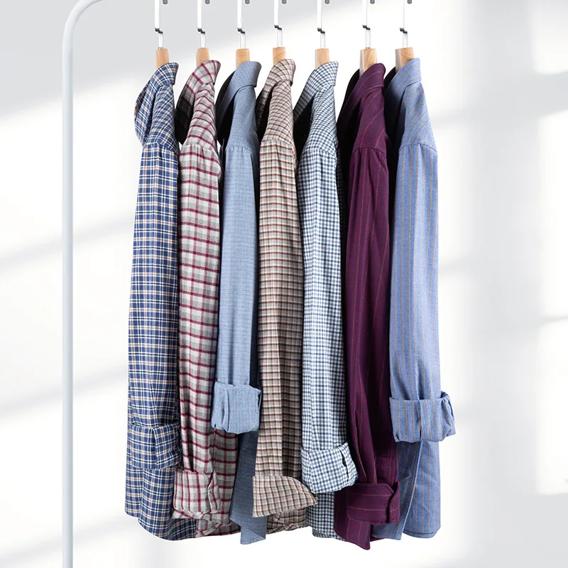 Business Casual Long-Sleeved Shirt for Men New Spring Autumn Plaid Striped Twill Quick Dry Sustainable 100% Cotton Breathable